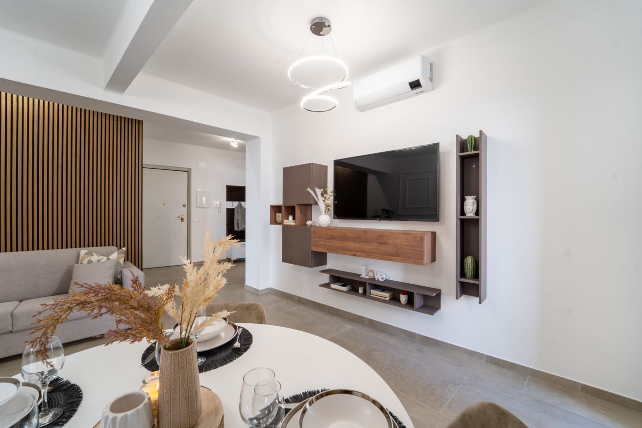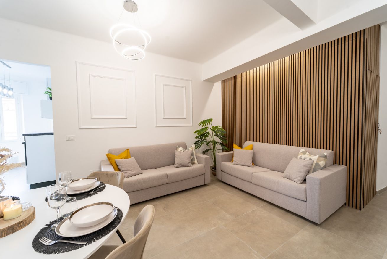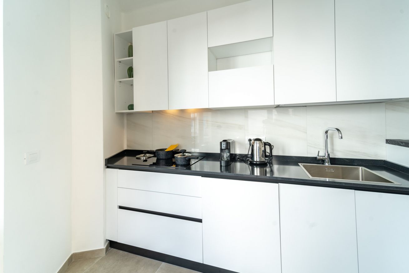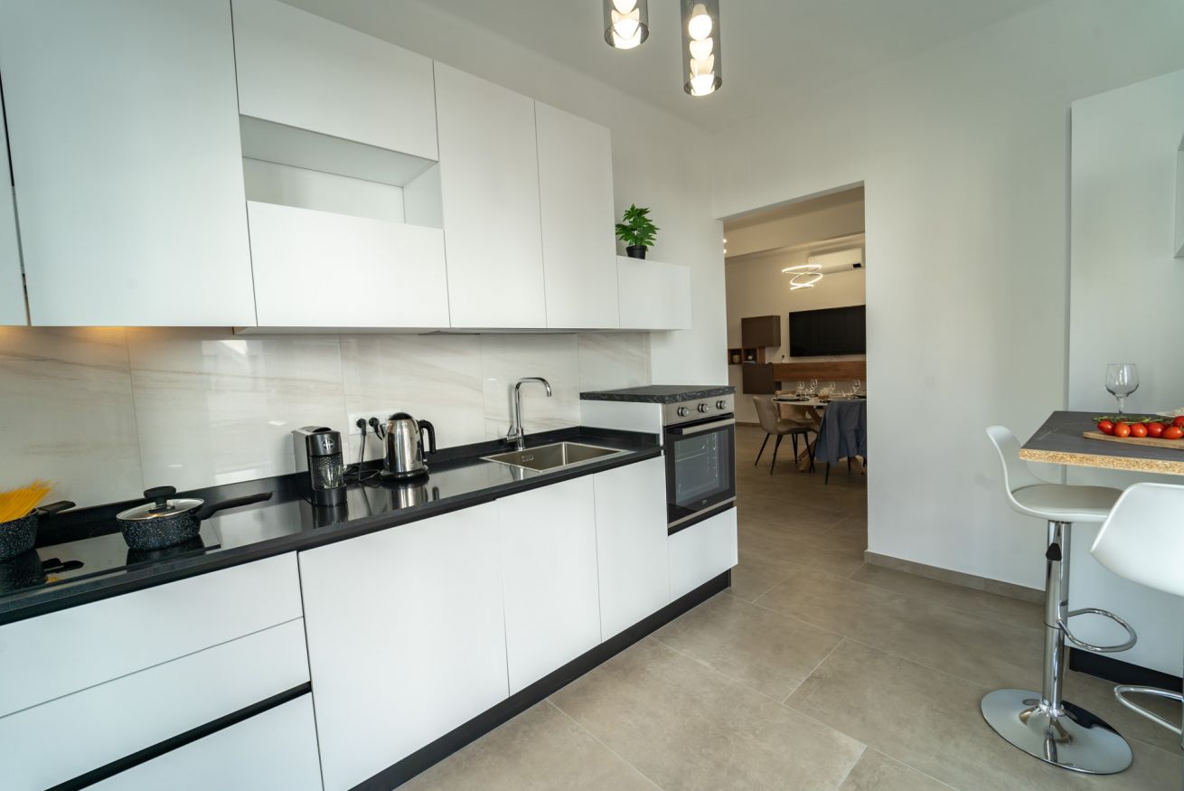 L'appartamento dispone di una spaziosa camera da letto, un ampio soggiorno con cucina a vista e due bagni moderni. È perfetto per coppie, famiglie o gruppi di amici che desiderano esplorare la città. La cucina è completamente attrezzata con elettrodomestici moderni, in modo da poter preparare i pasti comodamente a casa. Inoltre, la connessione Wi-Fi ad alta velocità è inclusa.
